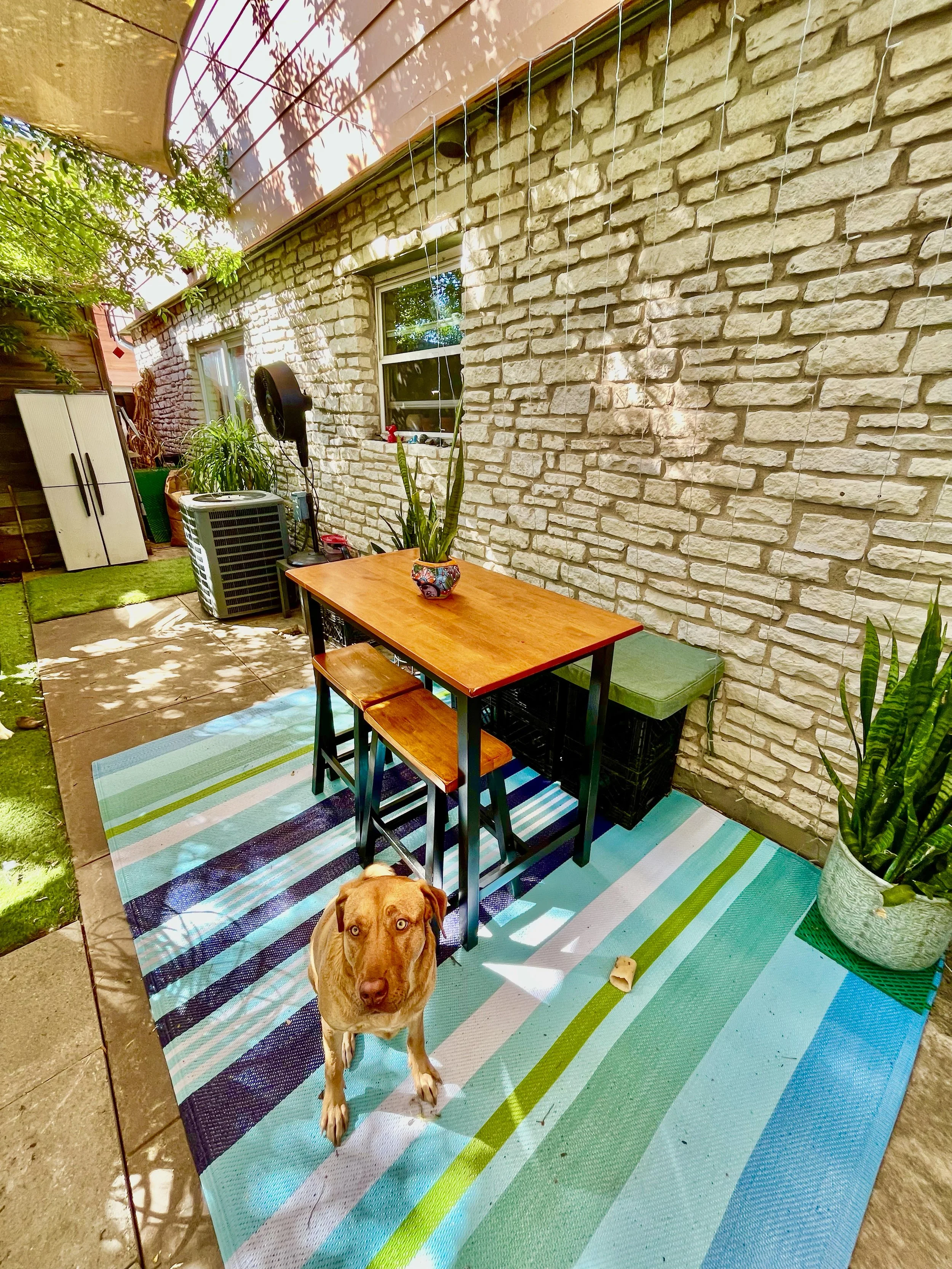 I have two wonderful dogs, who calm down after welcoming you in. There is no way to keep them 100% away from company. Please be advised.